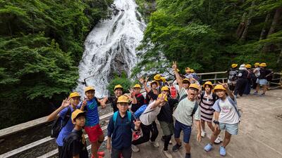 約5kmのハイキングが終了して、湯滝に到着しました。
