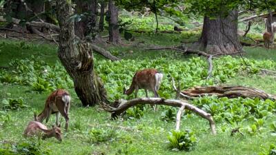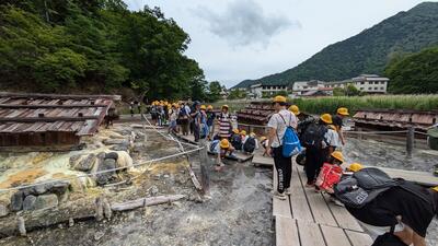 湯元に早く到着しましたので、源泉を見学してからホテルへ向かいます。鹿の親子が迎えてくれました。
