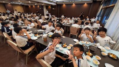 今日は、夏休み前最後の給食でした。今日の献立は、みんなの大好きな「夏野菜カレー」でした。残さず食べられましたか。