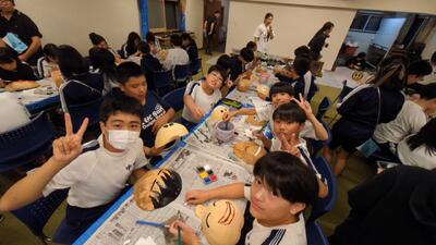 今日の最後は体験学習「ふくべ細工」です。思い思いの作品が完成しました。