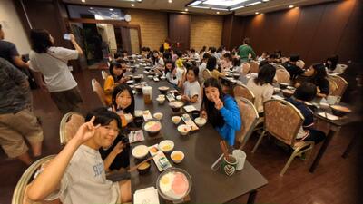 ホテルに到着しました。到着式を行い、各部屋へ向かいます。