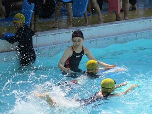 東京理科大学の学生さんが、3・5年生の水泳学習のサポートに入ってくれました。