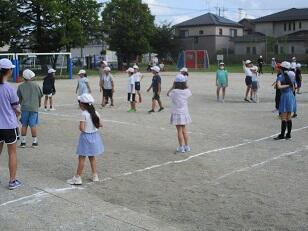 1年生が校庭いっぱいに「シャボン玉」を飛ばしていました。(7月16日)