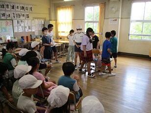 6年生が「着衣泳」を行いました。夏休みを前に、水難事故に遭ったときにどのように対処して自分の命を守るかを学びます。