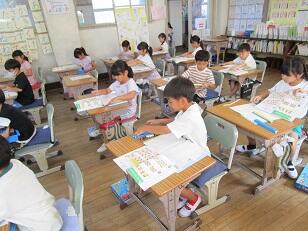 1年生の国語「おおきなかぶ」では、なかなか抜けないかぶをどうやって抜こうか考えていました。