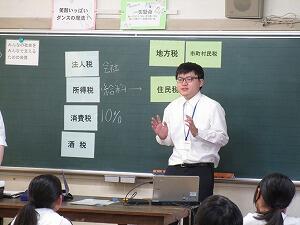 講師の先生からは、「税金はみんなが安全に楽しく生活できるようにするためのもの」とお話がありました。