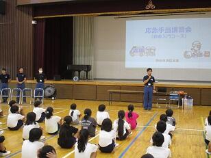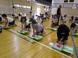 野田市消防本部の署員の皆様をお招きして、5・6年生が「応急手当講習会(救命入門コース)」に参加しました。