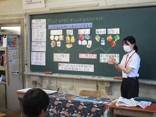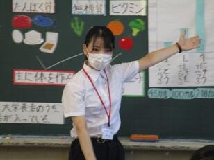 今週9日(月)より、栄養教諭を目ざす本校卒業生(現在 短期大学2年生)が教育実習を行いました。今日は、実習のまとめとして5年2組で授業を行いました。給食に牛乳が出る理由をみんなで考えました。