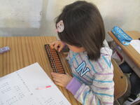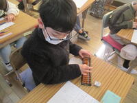 令和6年3月4日(月)、3年生が算数の時間にそろばんの学習を行っていました。