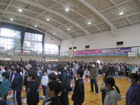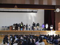 令和5年12月1日(金)、音楽部発表会後に12月の全校朝会を体育館で行いました。