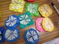 1年生にわたすプレゼントを折り紙で作っています。