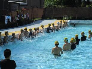 プールサイドでの暑さ指数は「8:30現在:27.9」「11:20現在:29.8」でしたので、こまめに休憩や水分補給を行いながら学習を進めていきます。