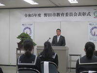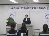 令和5年11月4日(土)、野田市教育委員会表彰が市役所で行われ、本校2年生の栁澤凪瑠さんが受賞されました。