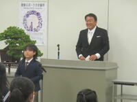 染谷教育長の挨拶の中では、本校の栁澤さんが、先日TBSテレビの「リトルエジソン」に出演したことが紹介されました。