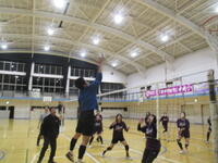 卒団される3名の部員を囲んで、PTAバレーボールチームと職員チームとのお別れ試合を行いました。