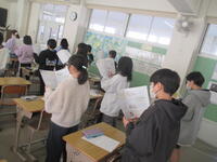 聴いて気づいたことをプリントに書き出し、グループの友達と意見交換をしました。