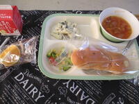 給食センターの栄養士と野田市教育委員会の職員が給食の様子を見に来られました。