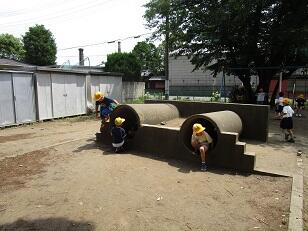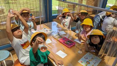 屋外で活動する子どもたちは、日かげに入ったり、水分補給をしたり、休憩したりしながら、楽しく休み時間を過ごしていました。