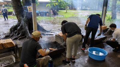 簡単そうに見えた火起こしですが、なかなか苦労していました・・・