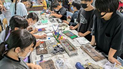 子ども美術館へ移動して、クリアキーホルダー作りを行います。