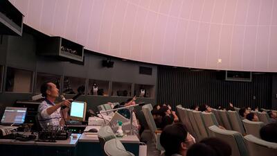 プラネタリウムを鑑賞しました。市内で校長先生をお勤めになった高橋先生に、星や宇宙のことにについて楽しく教えていただきました。