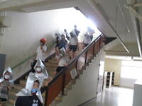 今回は、地震が発生した場合の一次避難、二次避難です。正しい避難経路を通り、安全に避難することが目標です。