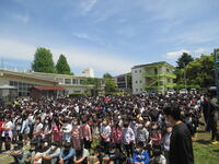 校長先生からは、150周年記念行事として、5月に航空写真やクラス写真の撮影が行われることの話がありました。クラス写真では、皆さんの姿と記念になる言葉を持ったカードを一緒に写真に写して、宇宙に届けようというプロジェクトに応募します。