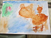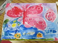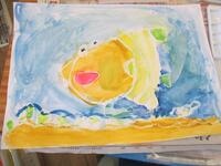 そこに、水をたくさん含ませた絵の具で、色をつけていきます。