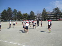 裏校庭では、体育の授業をしています。