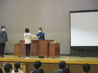 最後に5,6年児童で新体力テストの結果が優秀で運動能力証を受賞したお友達を代表して、6年代表児童を表彰しました。