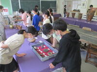 4日(火)には同じ生涯学習課が行っている文化財出前授業で「鈴木貫太郎教室」を受講しましたが、本日は野田市で出土された土器や石器などの展示品を見学したり、火起こし体験を行ったりしました。