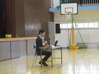 今週、今井教頭先生と3年館の歴史について調べました。3年館は95年目、7年館は91年目を迎えますが、昭和3年からの卒業生は3万2千人もいます。昭和20年前後は、全校で4千人以上の児童がいて、多い時で、毎年この体育館に集まっているお友達の数の卒業生がいました。そして社会に出て活躍をしています。このような歴史のある校舎で学べる学校は、全国に10校はないと思われます。皆さんが校舎を掃除してくれたり、新しいものから歴史のある古いものまで大切に使ってくれたおかげです。これからもよろしくお願いします。終わります。」