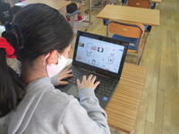 6年生は比例の学習です。クロームブックを使って、表やグラフを作成し、比例かどうか確認していました。