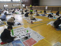 令和6年1月12日(金)、1・2校時に5年生が、3・4校時に6年生が体育館で席書会を行いました。