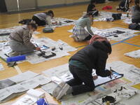 令和6年1月11日(木)、1・2校時に4年生が、3・4校時に3年生が体育館で席書会を行いました。