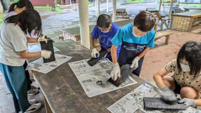 活動後は、手洗いや汗の始末をして、冷房のきいた教室で5時間目の学習に取り組んでいました。