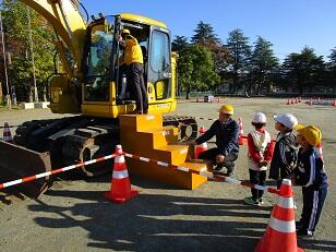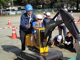 市内の東金野井にある「松浦建設株式会社」様が、社会貢献活動の一環として中央小学校1年生のために実施してくださいました。堤防の整備工事等で実際に使われている作業車などを校庭に展示していただき、1年生が実際に乗車するなど、貴重な体験をさせていただきました。