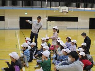 校庭に移動して、全校児童が「株式会社ワーサル」さんによる交通安全教室に参加しました。
