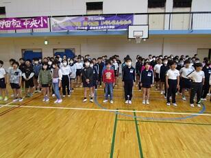 5月の全校朝会を行いました。中央小では、体育館に入場した学級から今月の歌(つばさをください)を歌い始めます。全校児童が集まるころには、きれいな歌声が響き渡ります。