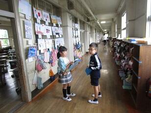 1・2年生で「学校探検」を行いました。2年生が1年生を連れて、校舎内のいろいろな教室を案内してくれました。