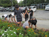栽培委員会の子ども達は、花壇の草取りや葉牡丹の苗の植え替えを行っていました。