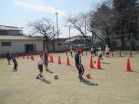 2年生は、パスの練習をしています。まっすぐけるのは、なかなか難しいですね。