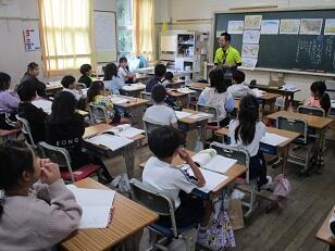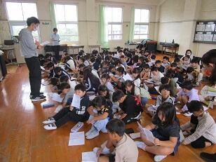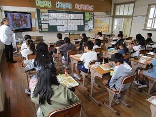 まず、中央小学校の卒業生である市長に、中央小の歴史に関する発表をクイズを交えて行いました。