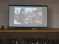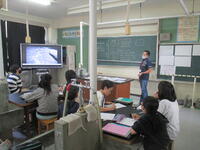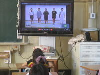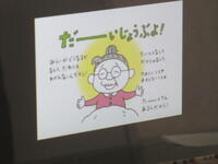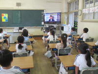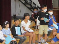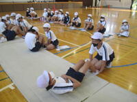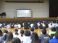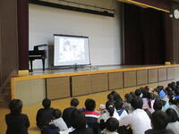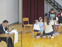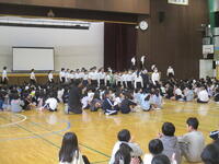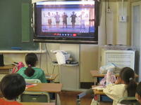 今日は、最初に普段の練習風景を撮った動画を全校児童に見てもらいました。