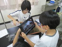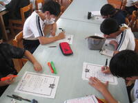 昨日の実験の振り返りを行いながら、結果をまとめていました。