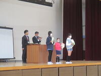 最初に、各学年とくすのき・しいのみ学級の代表者が「前期がんばったこと」の発表を行いました。