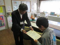 入選の児童(18名)については、昼休みに校長室で表彰を行いました。