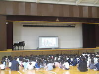 校長先生からは、放課後のみの練習という制限のある中だったが集中して練習を積み重ねてきたこと、当日は心を一つに美しい音やハーモニーを響かせられるように、残された練習期間では大きなホールで発表する姿をイメージして練習してほしいことを伝えました。