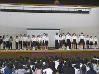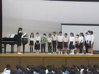 その後、吹奏楽部と合唱部の児童が入場し、部員紹介をしました。