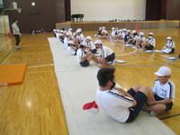 上体起こしです。力強く体を起こし、連続して行うことができました。